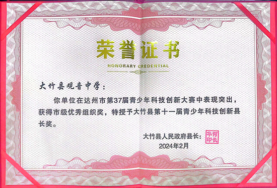 · 觀(guān)音中學(xué)榮獲大竹縣第十一屆青少年科技創(chuàng)..