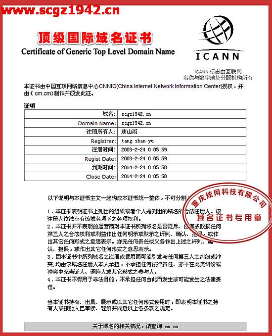 網(wǎng)站擁有自己的頂級域名(scgz1942.cn)。