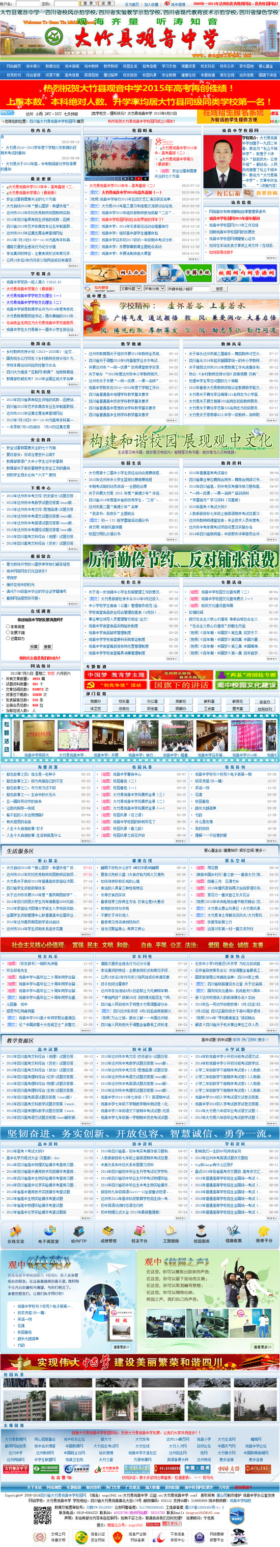 現(xiàn)在,不論是你在哪里上網(wǎng),只要輸入“觀音中學(xué)校園網(wǎng)”等相關(guān)關(guān)健字,都是能找到該網(wǎng)站。而且現(xiàn)在的網(wǎng)站已經(jīng)收錄了近2000多篇文章了,設(shè)置了觀中新聞、觀中教師、觀中教研、校園生活、學(xué)習(xí)天地、家長園地等21個欄目,40多個分欄目,內(nèi)空包括教育、教學(xué)、校園、安全、健康、時訊、資料等方面?傊F(xiàn)在校園網(wǎng)的發(fā)展一直秉承:觀中校園網(wǎng)是宣傳觀音中學(xué)的一所網(wǎng)站。內(nèi)容豐富,消息真實,信息及時。