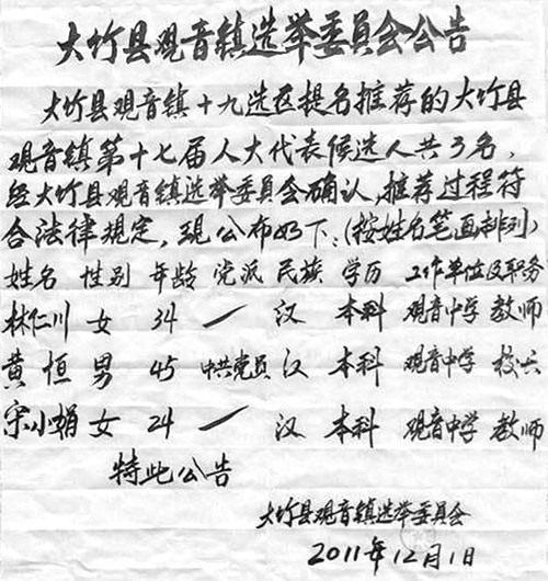 大竹縣觀音鎮(zhèn)選舉委員會(huì)公告