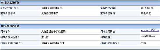大竹縣觀音中學(xué)校園網(wǎng)順利通過工信部網(wǎng)站備案
