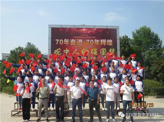 為熱烈慶祝中華人民共和國成立七十周年,觀中師生共同唱響《我和我的祖國》,此次活動由學校黨總支書記、校長趙云建同志親自策劃,學校團委具體實施,在吳旭林、李清清、周雪三位音樂老師的精心指導和青年教師、學生們的積極參與、配合下,歷時70分鐘順利完成場地布置、實景拍攝。