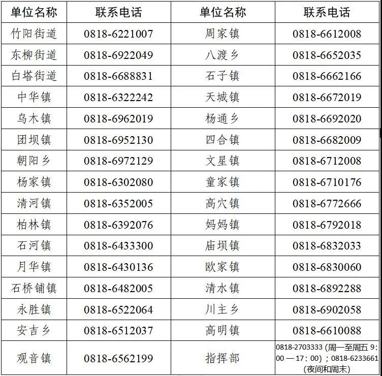 大竹縣應(yīng)對新型冠狀病毒感染肺炎疫情應(yīng)急指揮部入(返)竹人員報備聯(lián)系電話一覽表